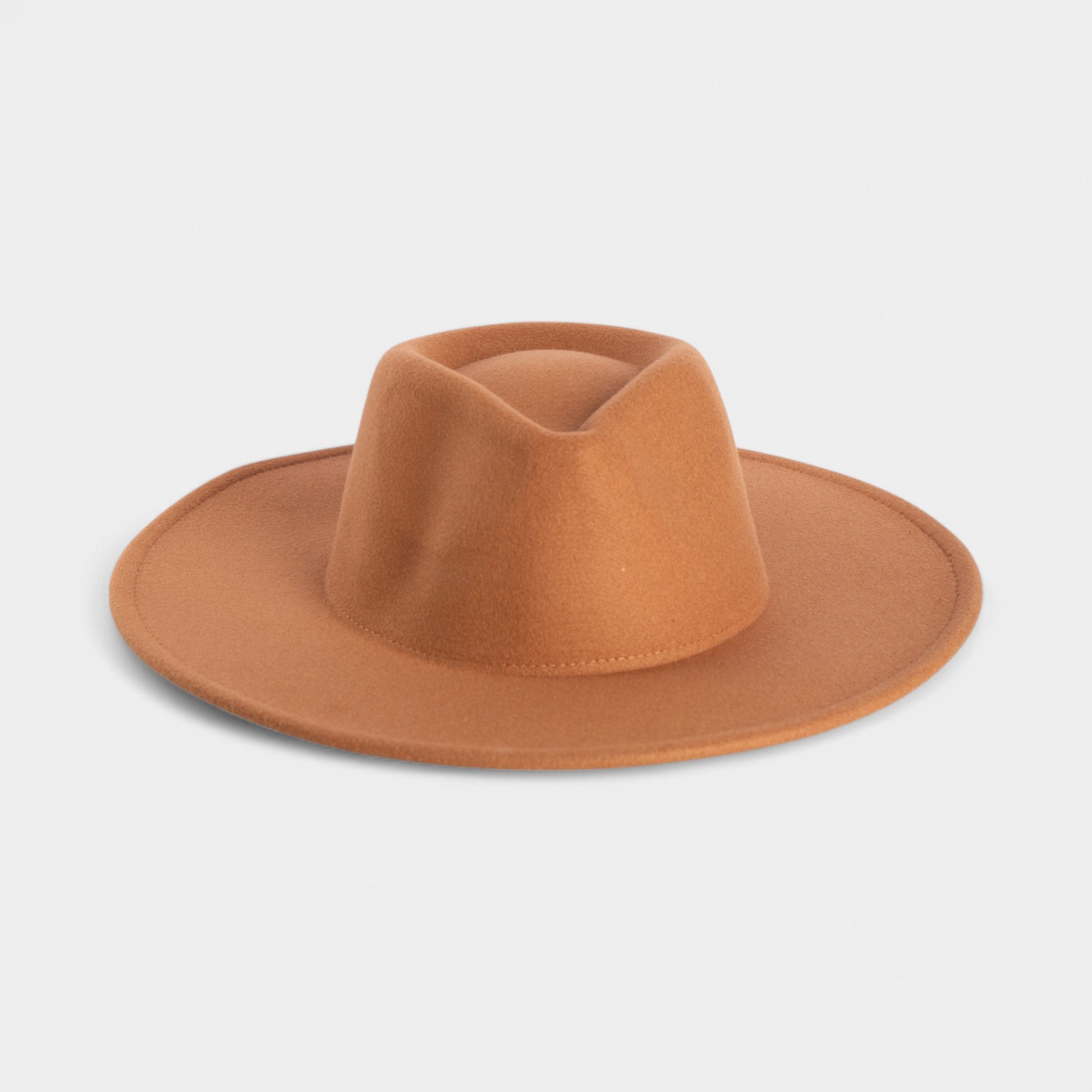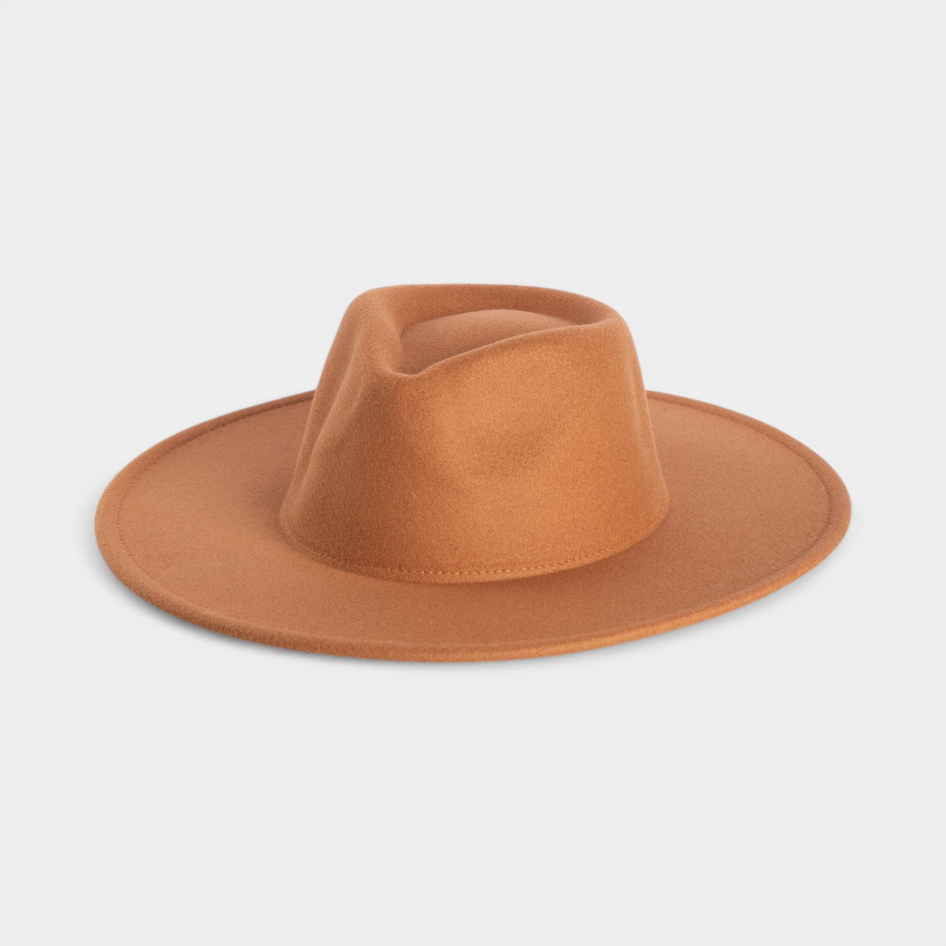 Design: Wide-brimmed hat with a stylish strap and modern buckle
